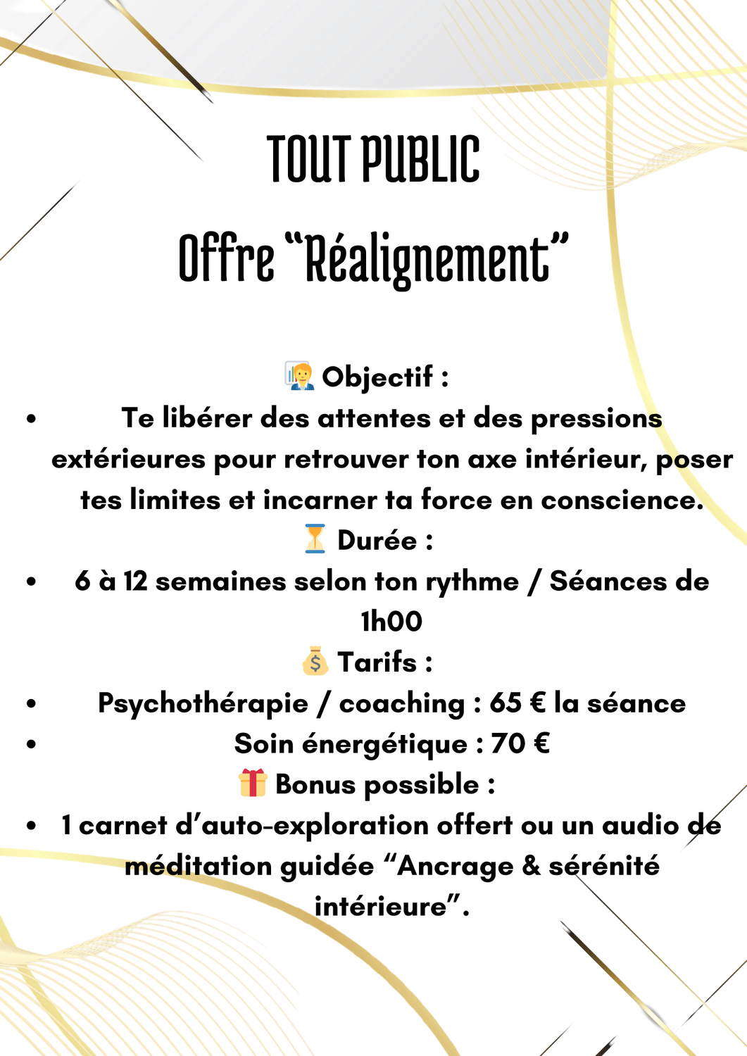 Grâce aux outils comme l’EMDR, la TCCE, le coaching et les soins énergétiques, tu intègres les changements en profondeur, dans le respect de ton rythme et de ton histoire.