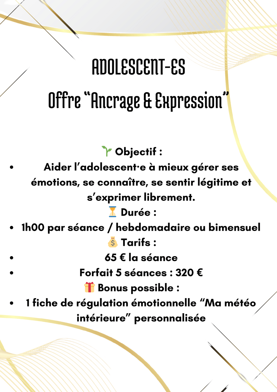 Je suis là pour t’aider à mettre des mots sur ce que tu ressens, à retrouver confiance en toi, à comprendre comment tu fonctionnes.